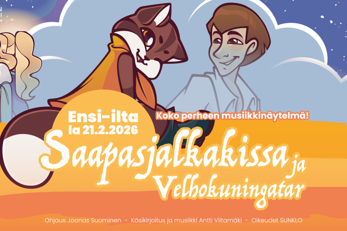 Saapasjalkakissa ja Velhokuningatar -näytelmään 65 € (norm. 80 €).