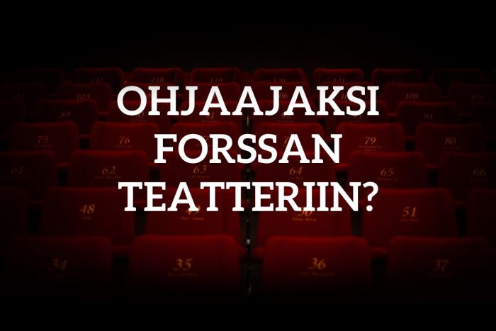 Haemme nyt vuoden 2027 produktioihin ohjaajaa, joka ymmärtää harrastajateatterimaailman realiteetit: kenties aikataulutus ja toiminnan organisointi harjoituskaudella ovat vahvuuksiasi. Osaat pitää langat käsissäsi ja sinulla on näkemystä myös varsinaisen ohjauksen ulkopuolelle jäävistä asioista, etkä pelkää ottaa osaa lavastuksen ja tekniikan visiointiin. Valmius ohjata niin aikuis- kuin lapsinäyttelijöitä katsotaan eduksi.